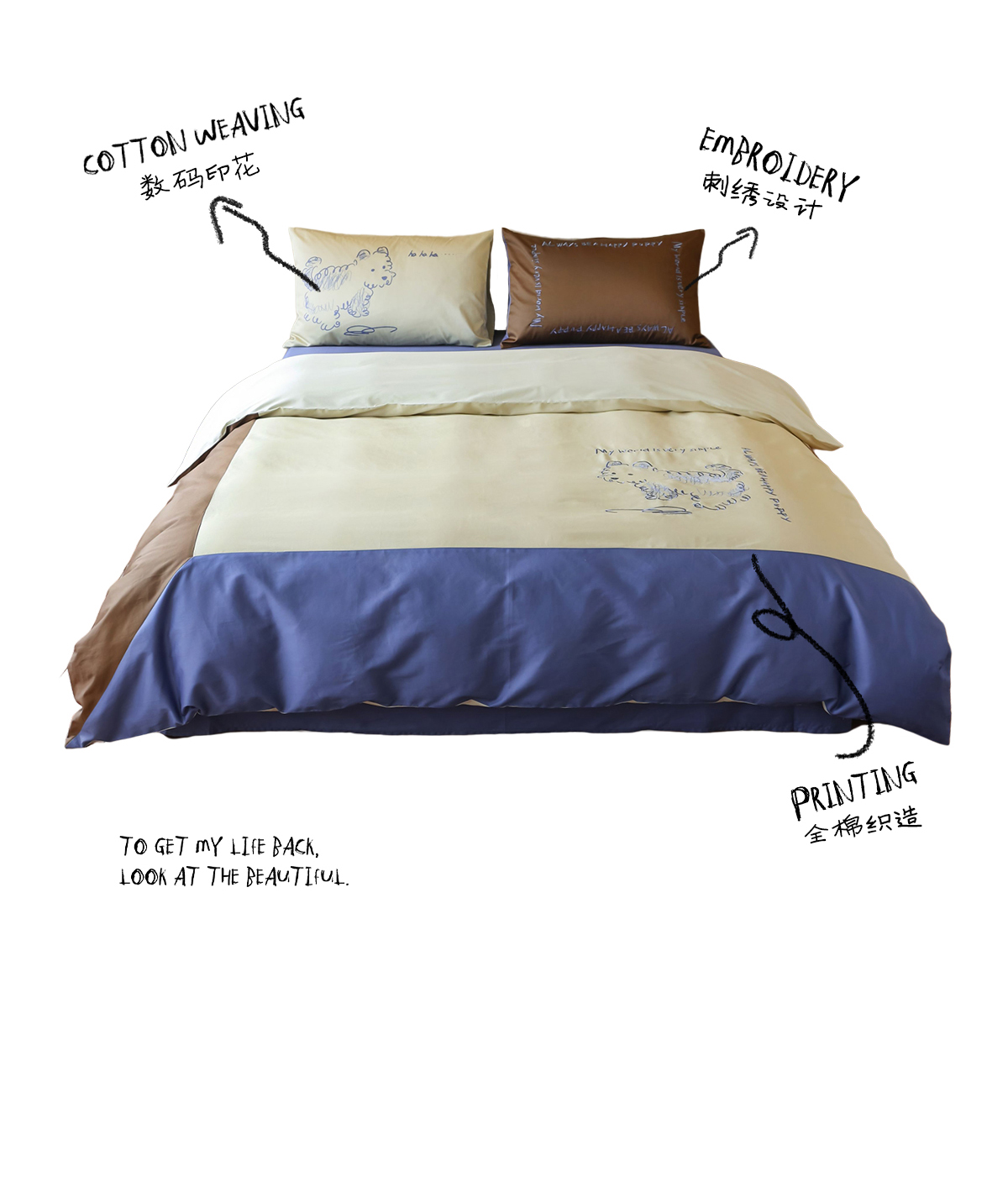 北欧条纹格纯棉全棉100男士床裙款四件套1.5m床单1.8米被套床笠罩