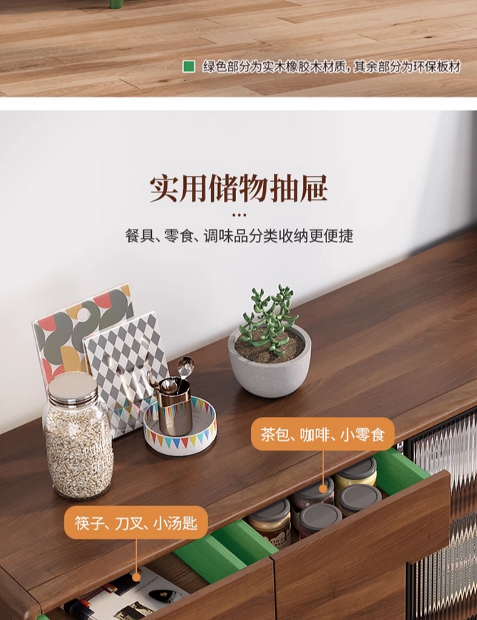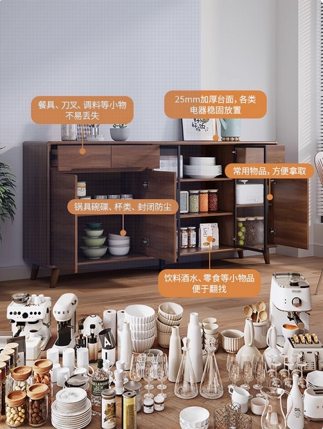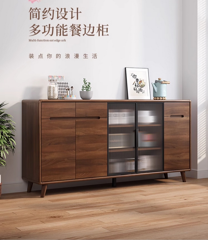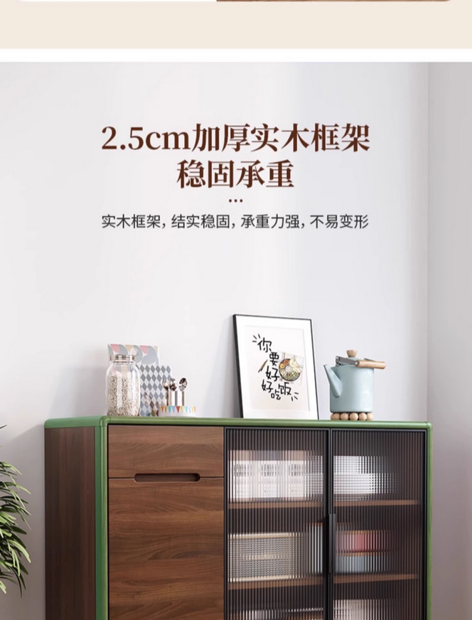 实木框餐边柜现代简约客厅酒柜茶水柜厨房储物柜橱柜收纳一体靠墙