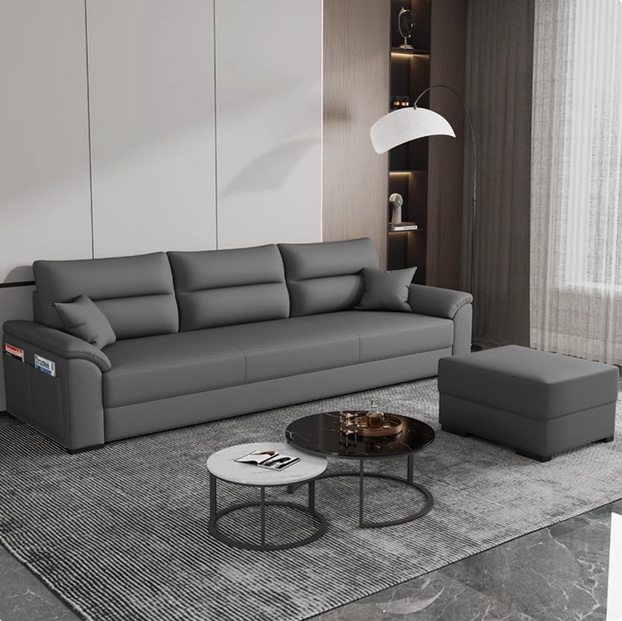 歌迪 极简风格 防水防污 健康环保 超柔科技布 实木框架 高密度海绵 浅灰色 脚踏