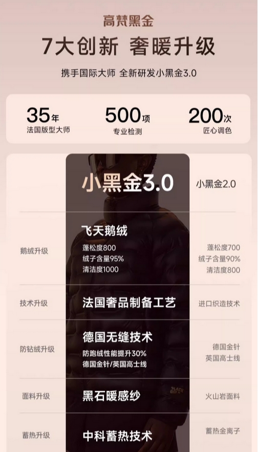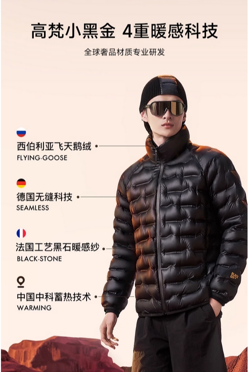 【高梵黑金鹅绒服】小黑金3.0羽绒服800蓬95白鹅绒短款轻薄高端男