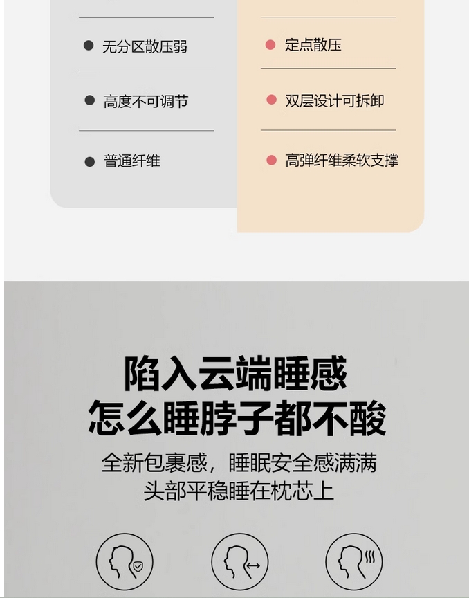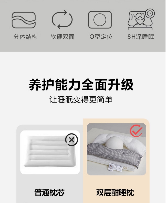 全新升级款护颈枕不压脸护颈枕芯枕头一对装家用睡觉专用枕一只装