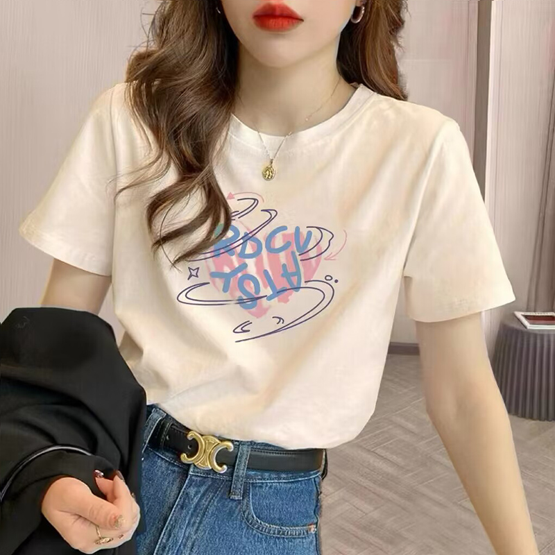白色天丝短袖t恤女夏季高级感小众设计冰丝半袖时尚卡通印花体恤