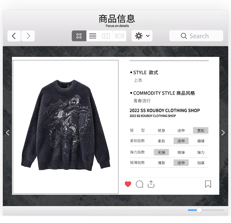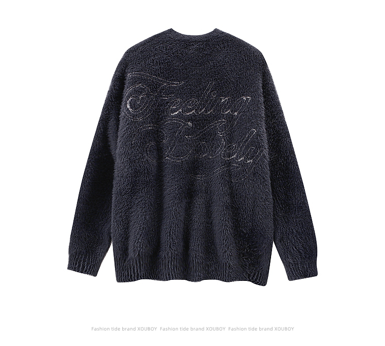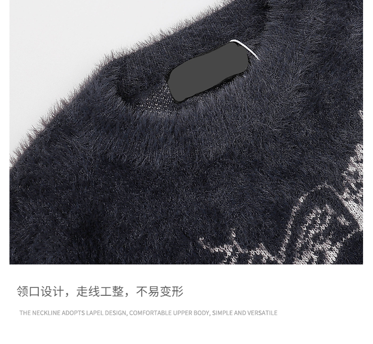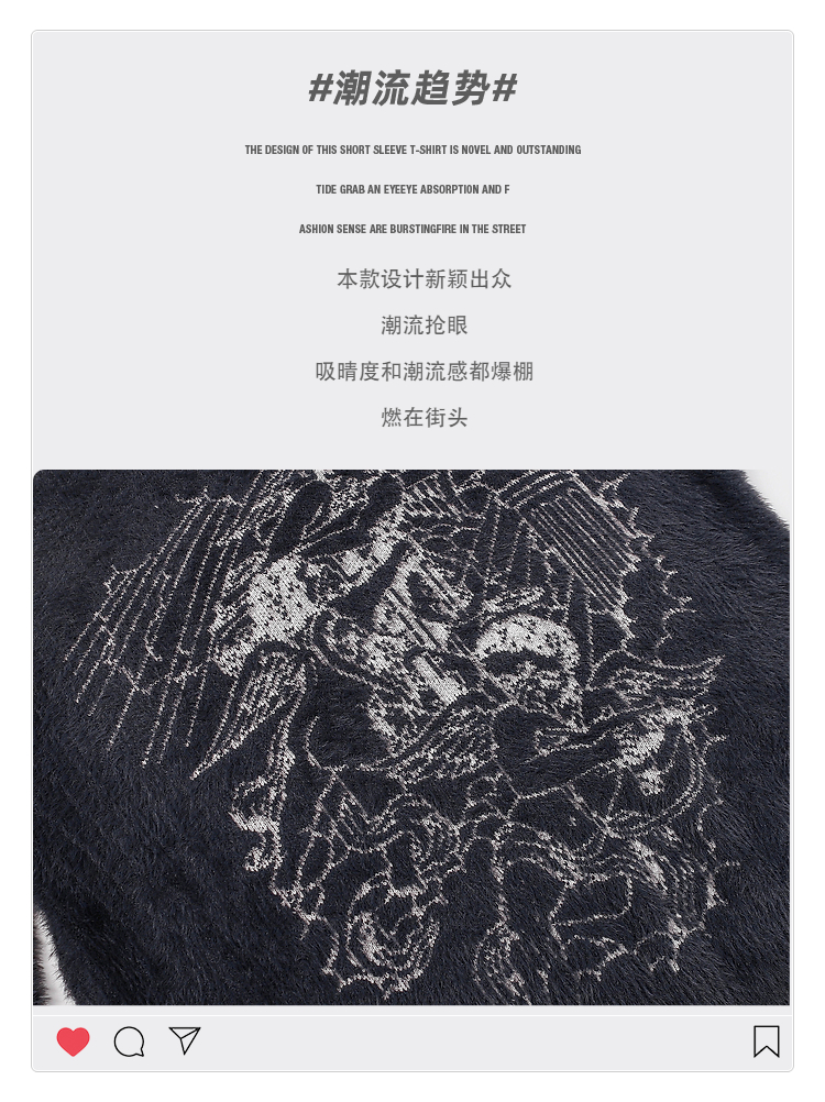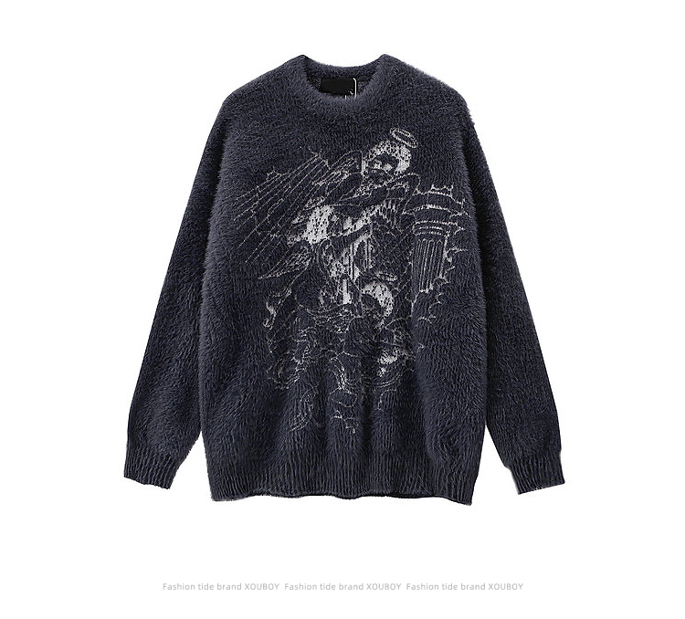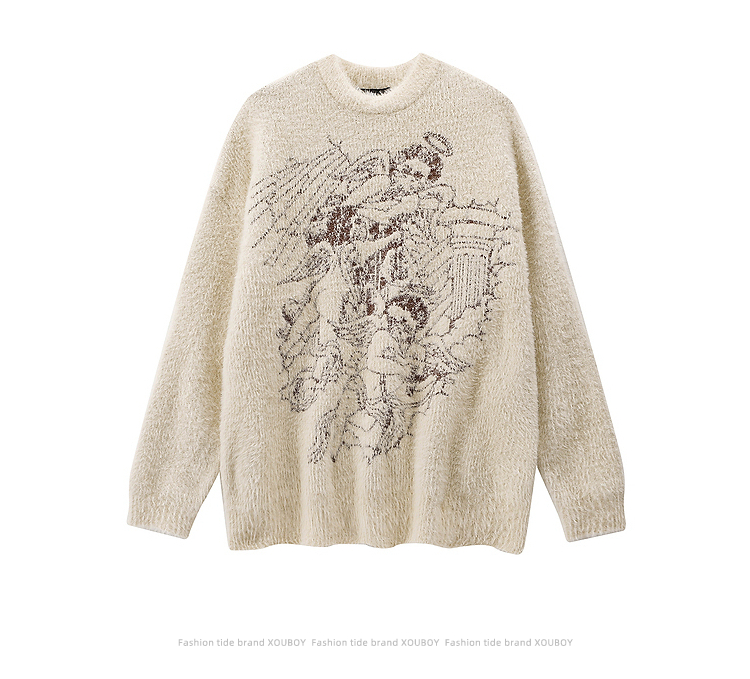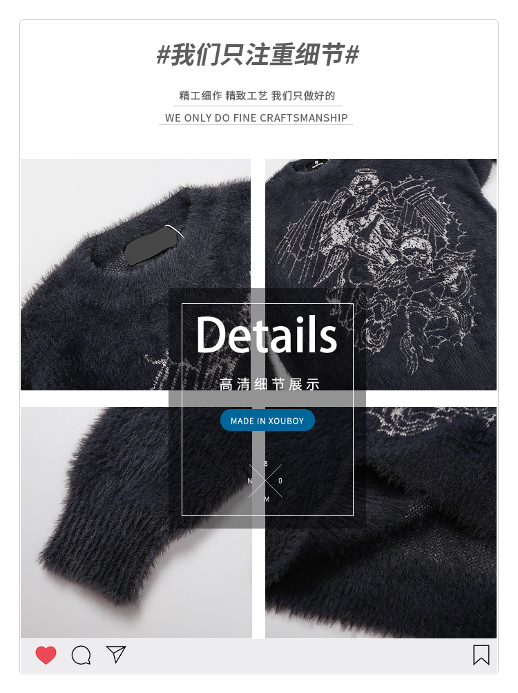 国潮美式hiphop创意植绒情侣毛衣男秋冬设计感慵懒风红色针织线衫