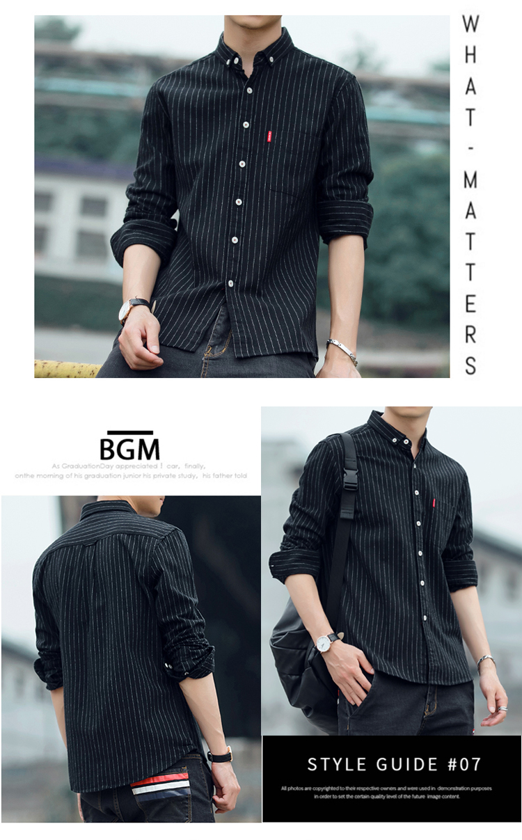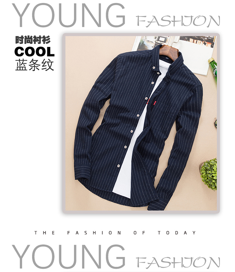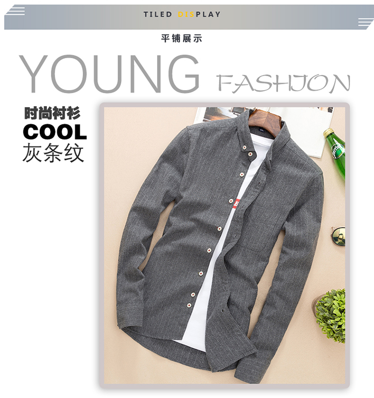长袖衬衫男卡其色字母印花100%纯棉青少年学生衬衣服秋季个性外套